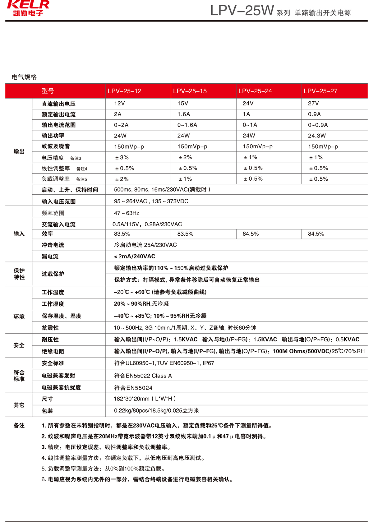LPV-25-12 系列 單路輸出開關電源
