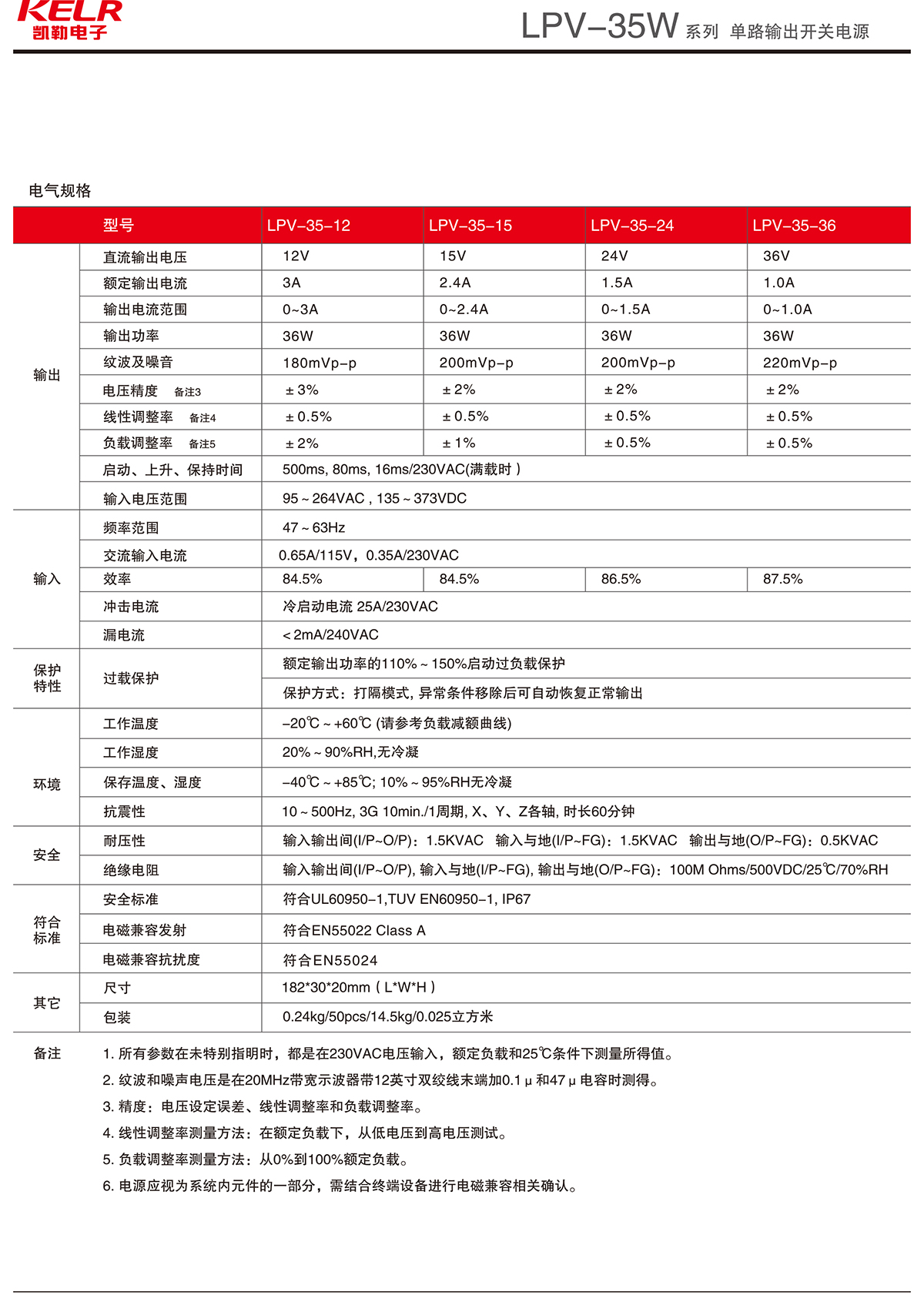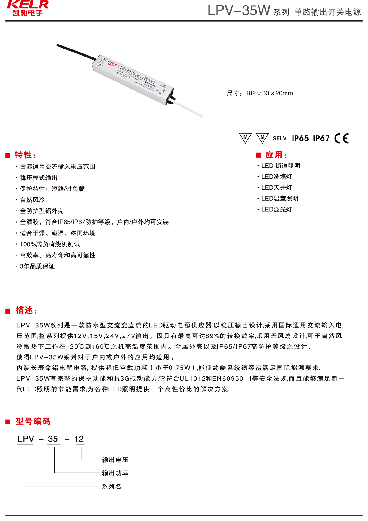 LPV-35-12 系列 單路輸出開關電源