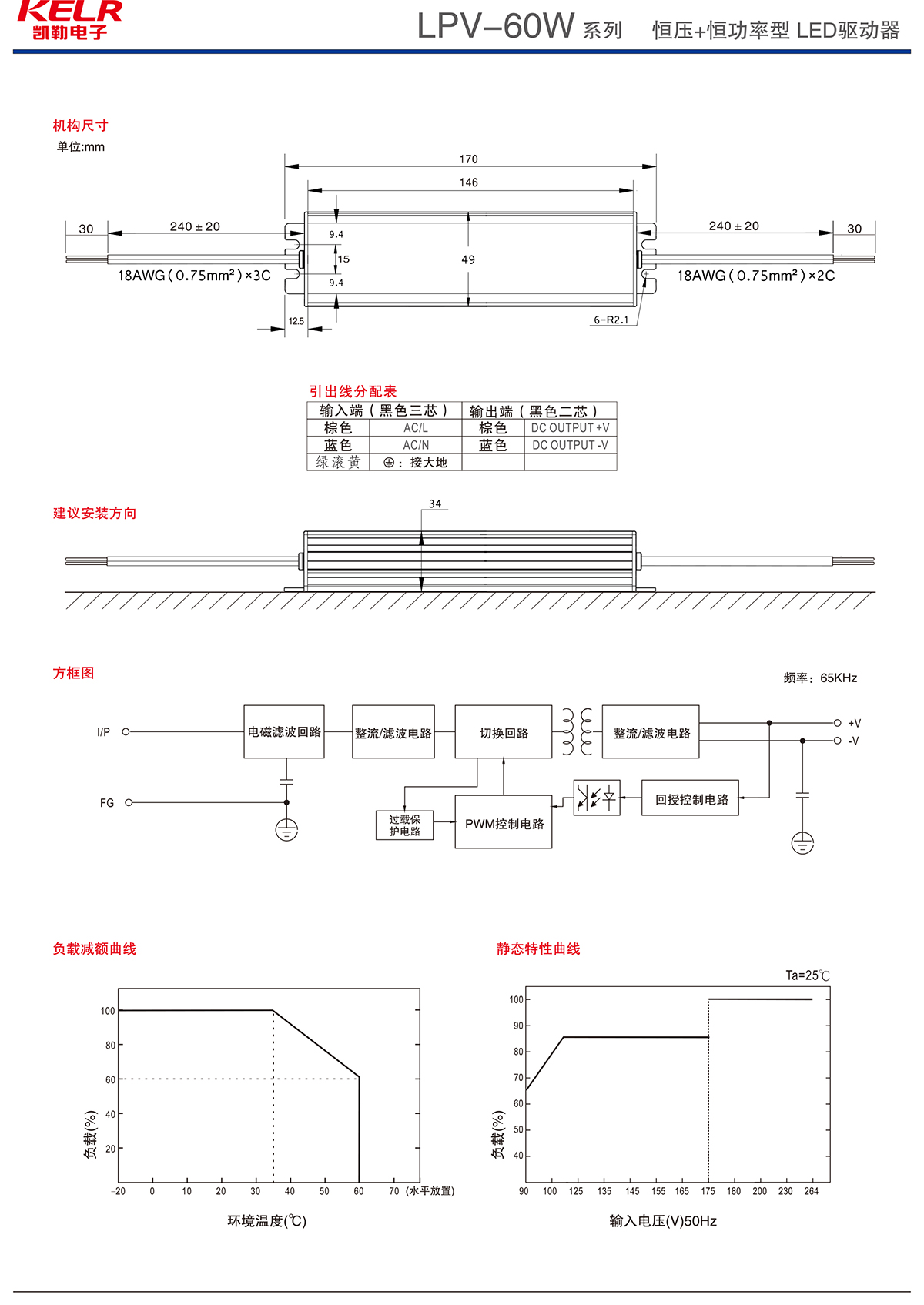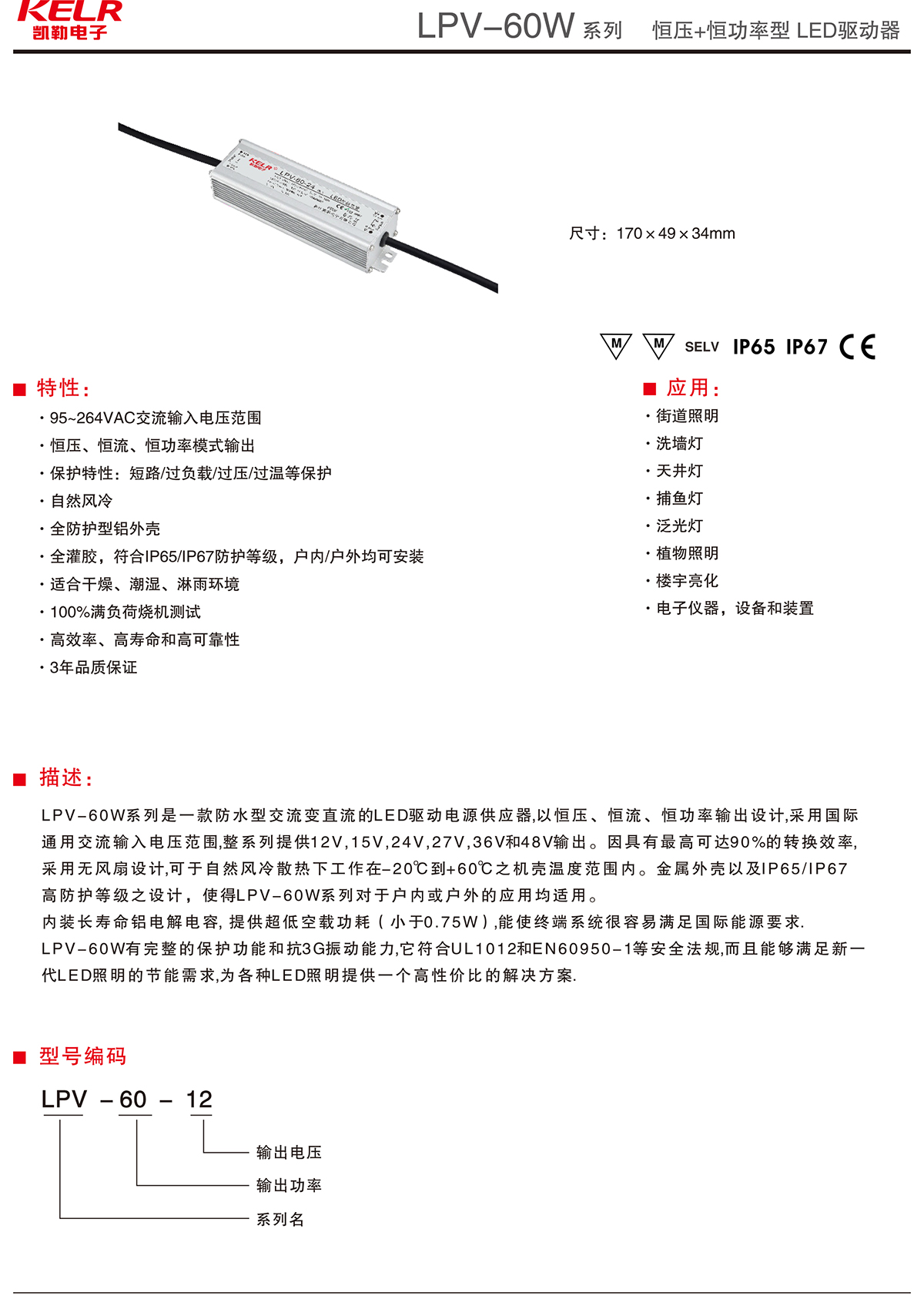 LPV-60-12 系列 恒壓+恒功率型LED驅動器