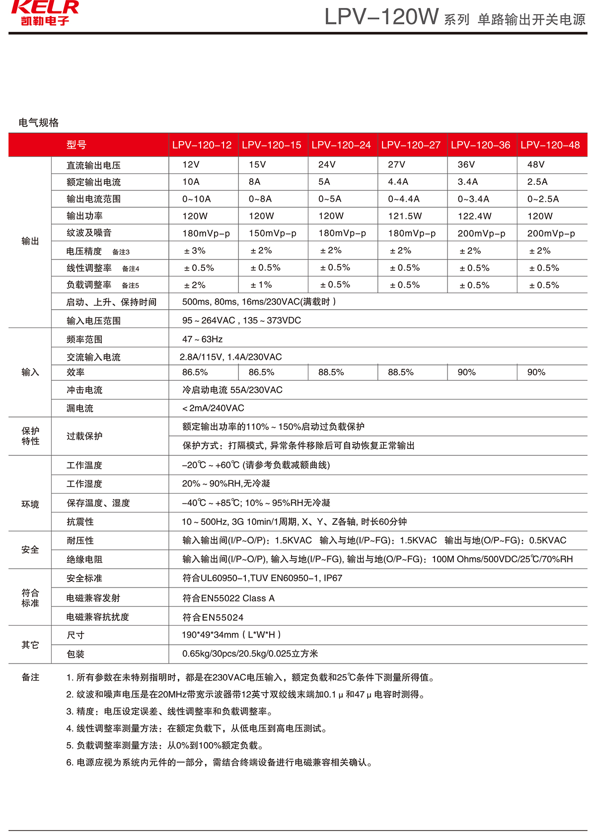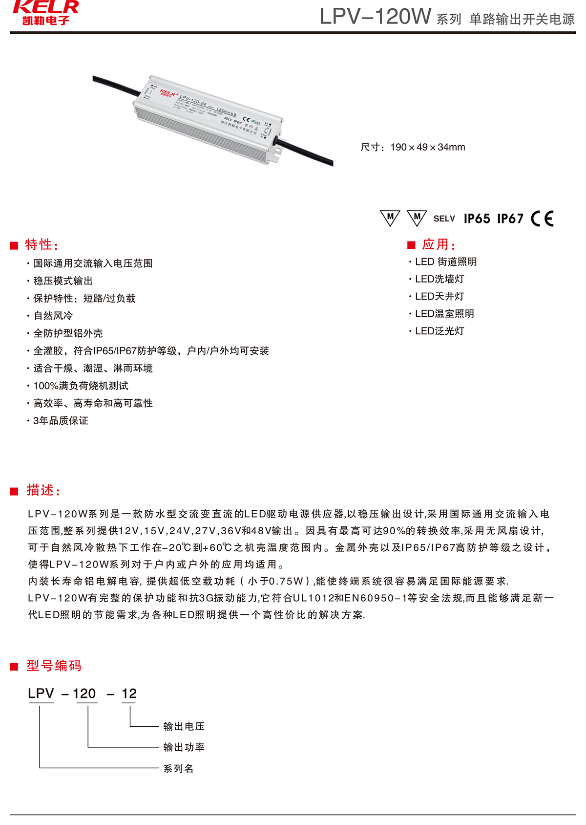 LPV-120-12 系列 單路輸出開關電源