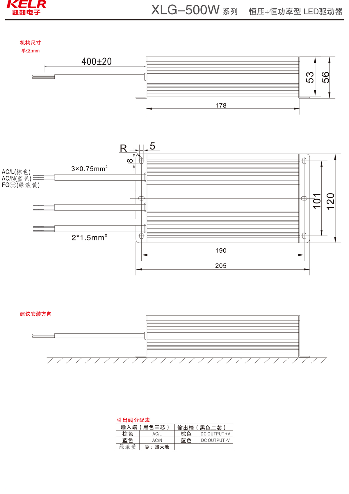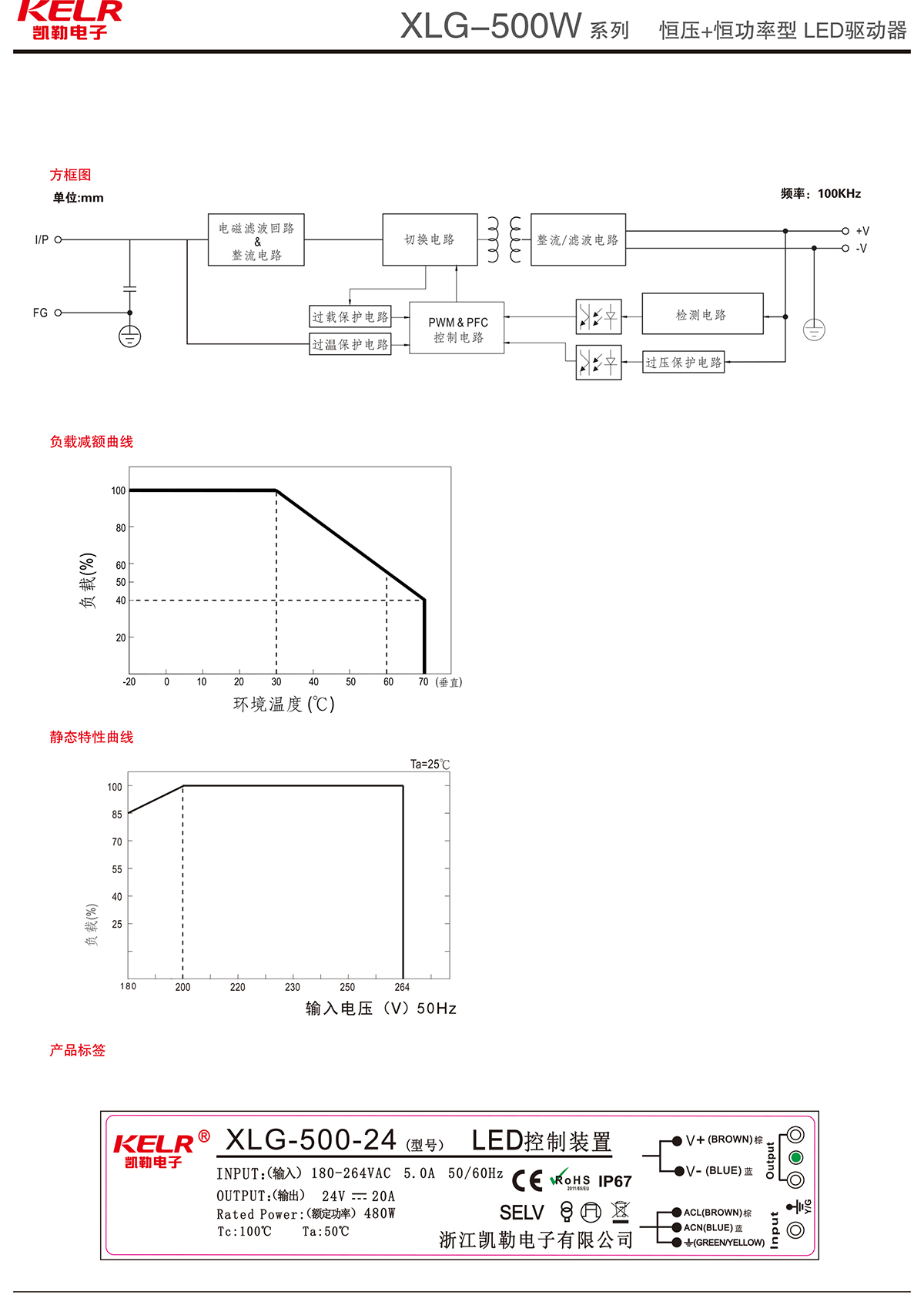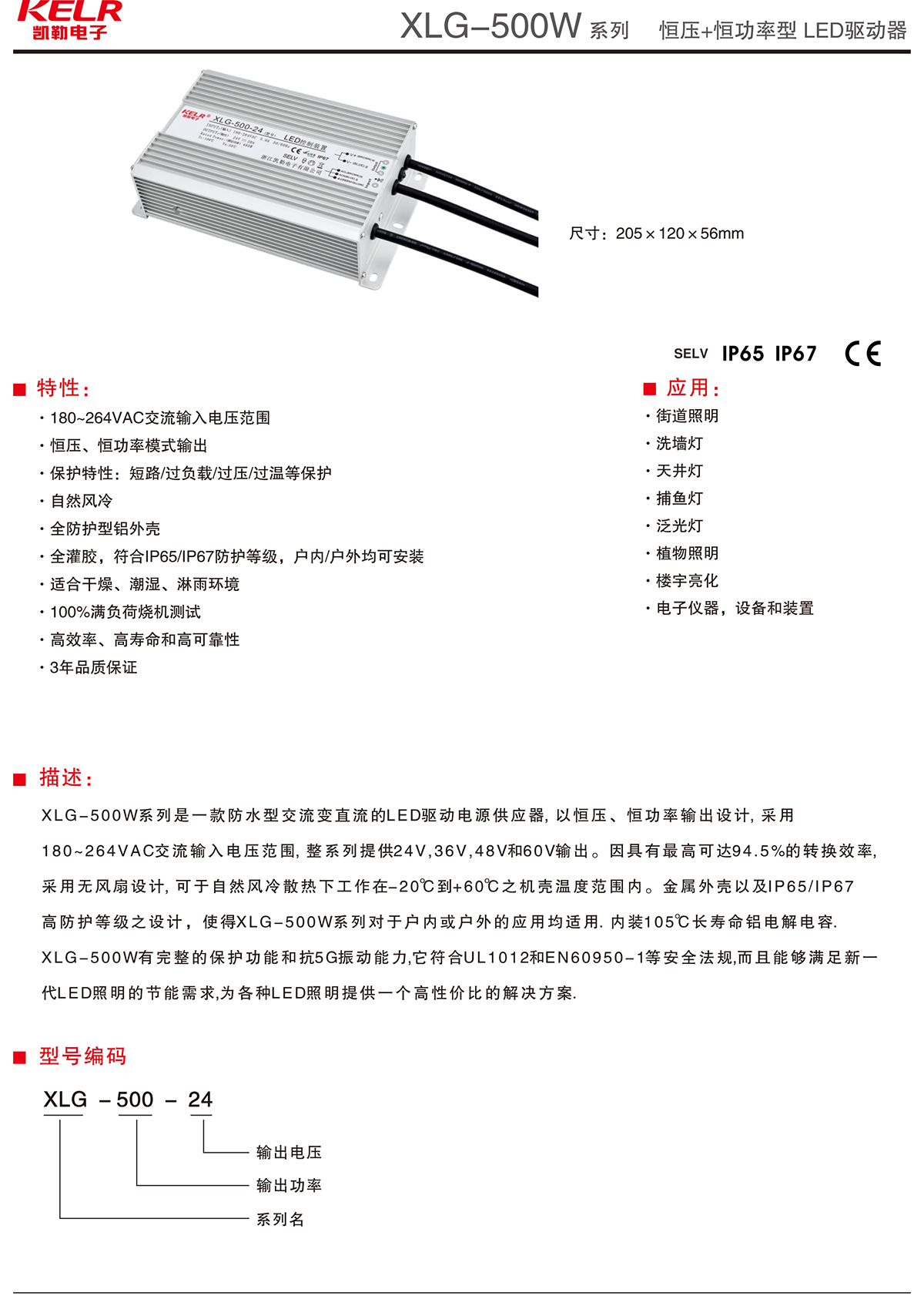 XLG-500-24 系列 恒壓+恒功率型LED驅動器