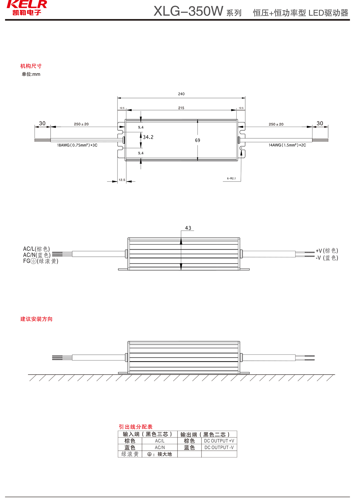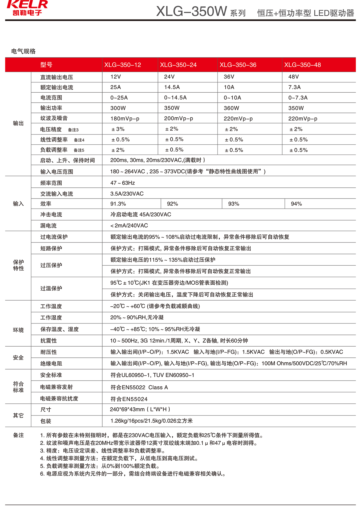 XLG-350-24 系列 恒壓+恒功率型LED驅動器