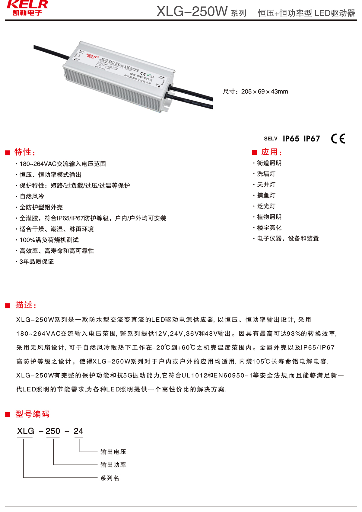 XLG-250-24 系列 恒壓+恒功率型LED驅(qū)動器