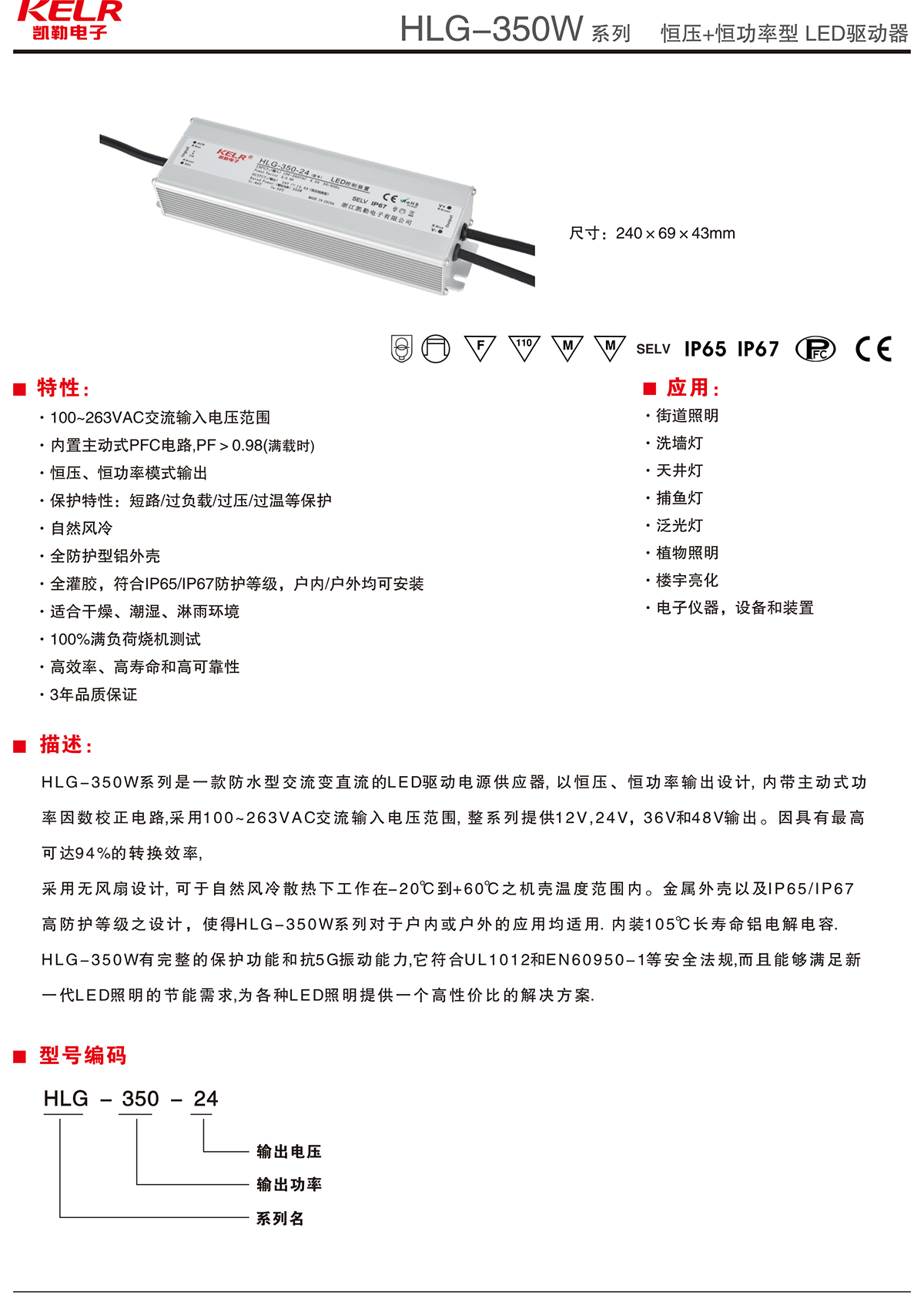 HLG-350-24 系列 恒壓+恒功率型LED驅(qū)動(dòng)器
