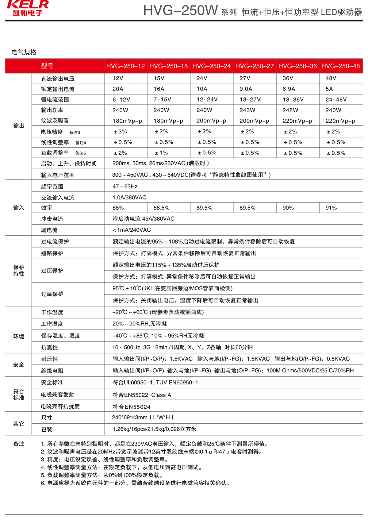 HVG-250-48 系列 恒流+恒壓+恒功率型LED驅動器
