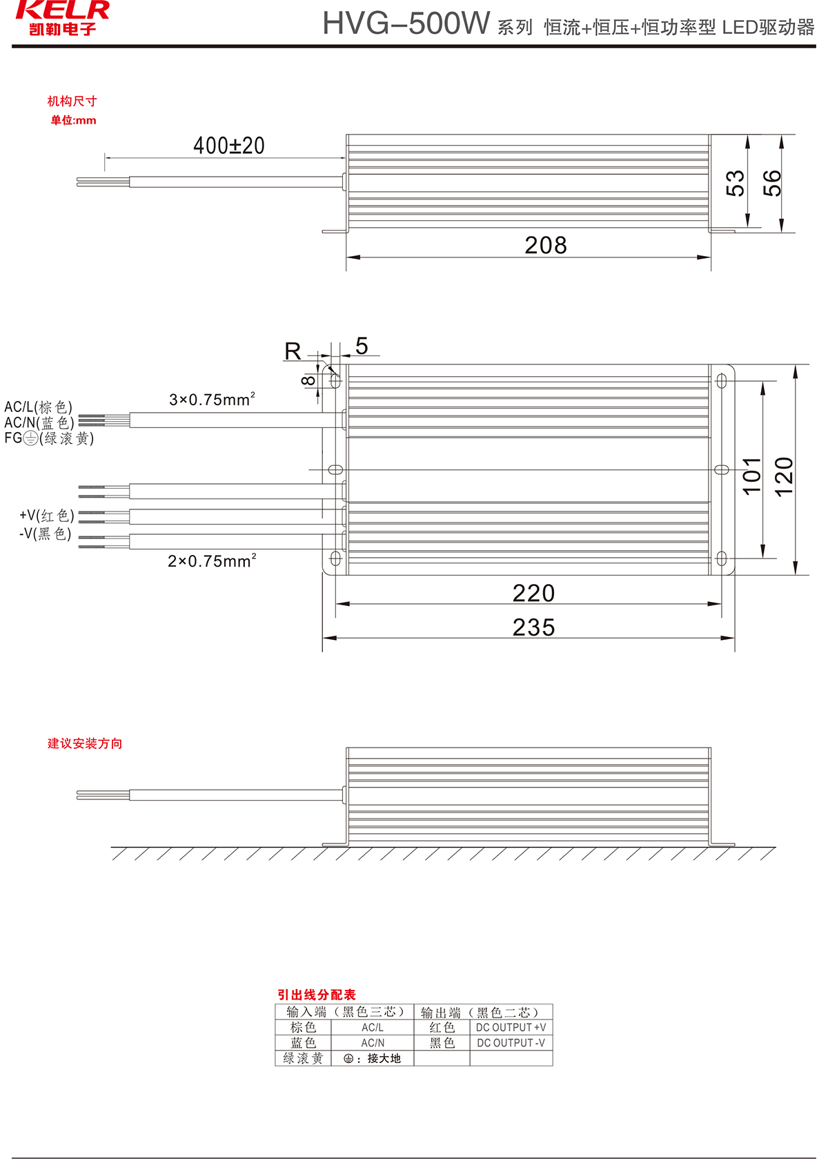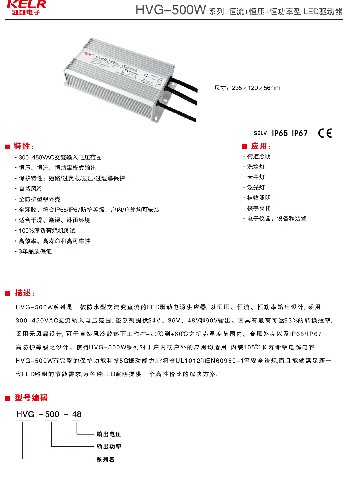 HVG-500-48 系列 恒流+恒壓+恒功率型LED驅動器