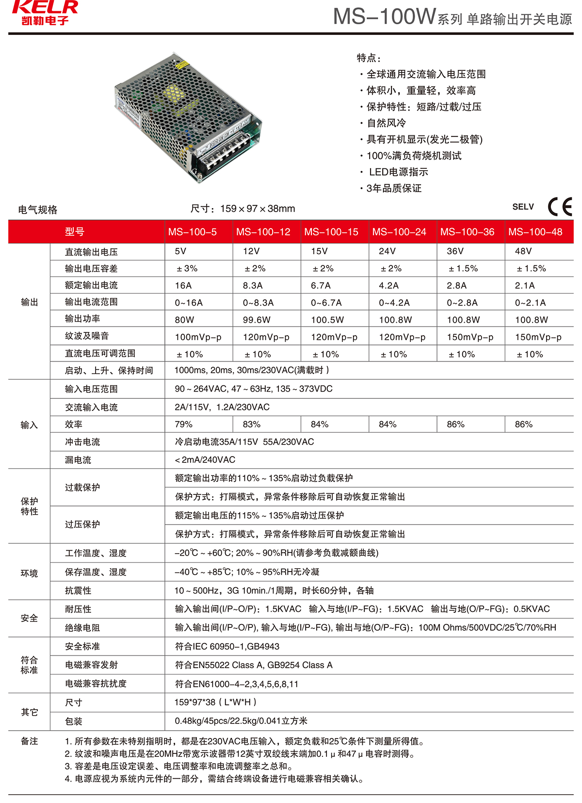 MS-100W 系列 單路輸出開關電源