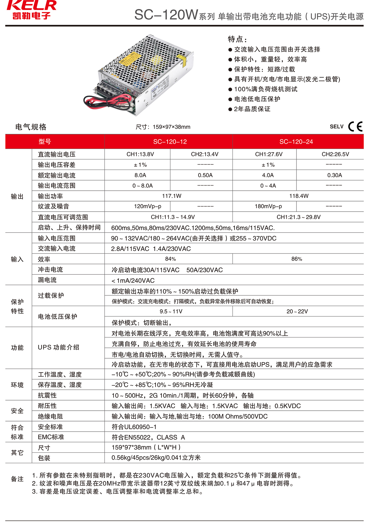 SC-120W 系列 單輸出帶電池充電功能(UPS)開關電源