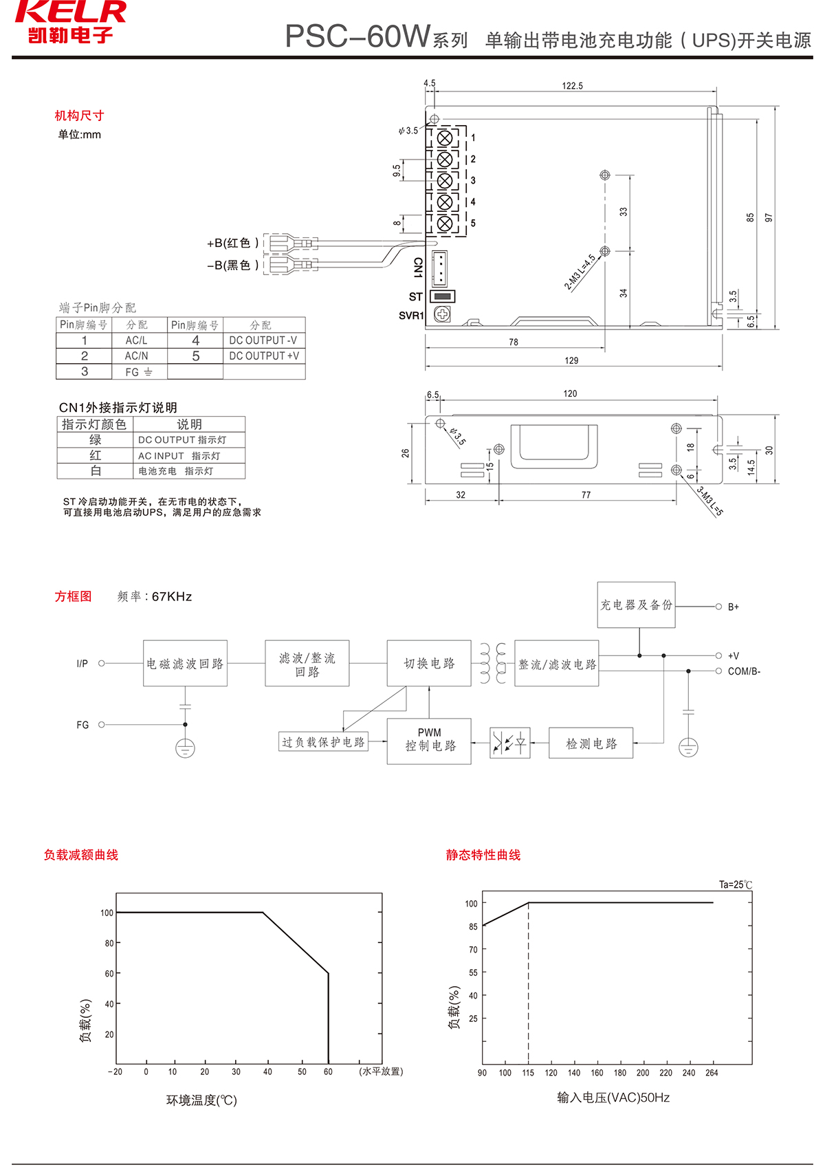 PSC-60W 系列 單輸出帶電池充電功能(UPS)開(kāi)關(guān)電源